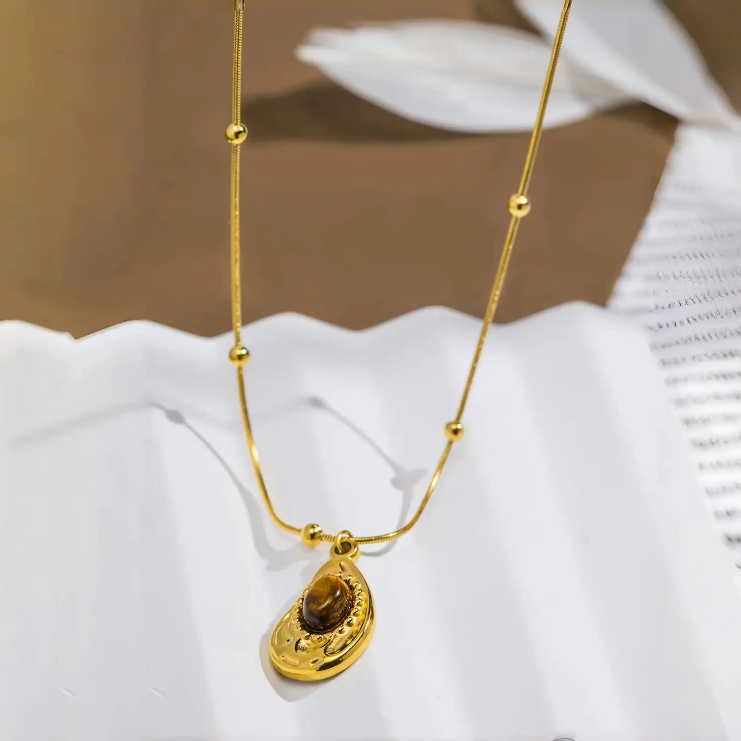 🎁 শুধুমাত্র Giftlo-এর এক্সক্লুসিভ কালেকশনে পাওয়া যাচ্ছে এই 18K Gold Plated Tiger’s Eye Waterdrop Necklace