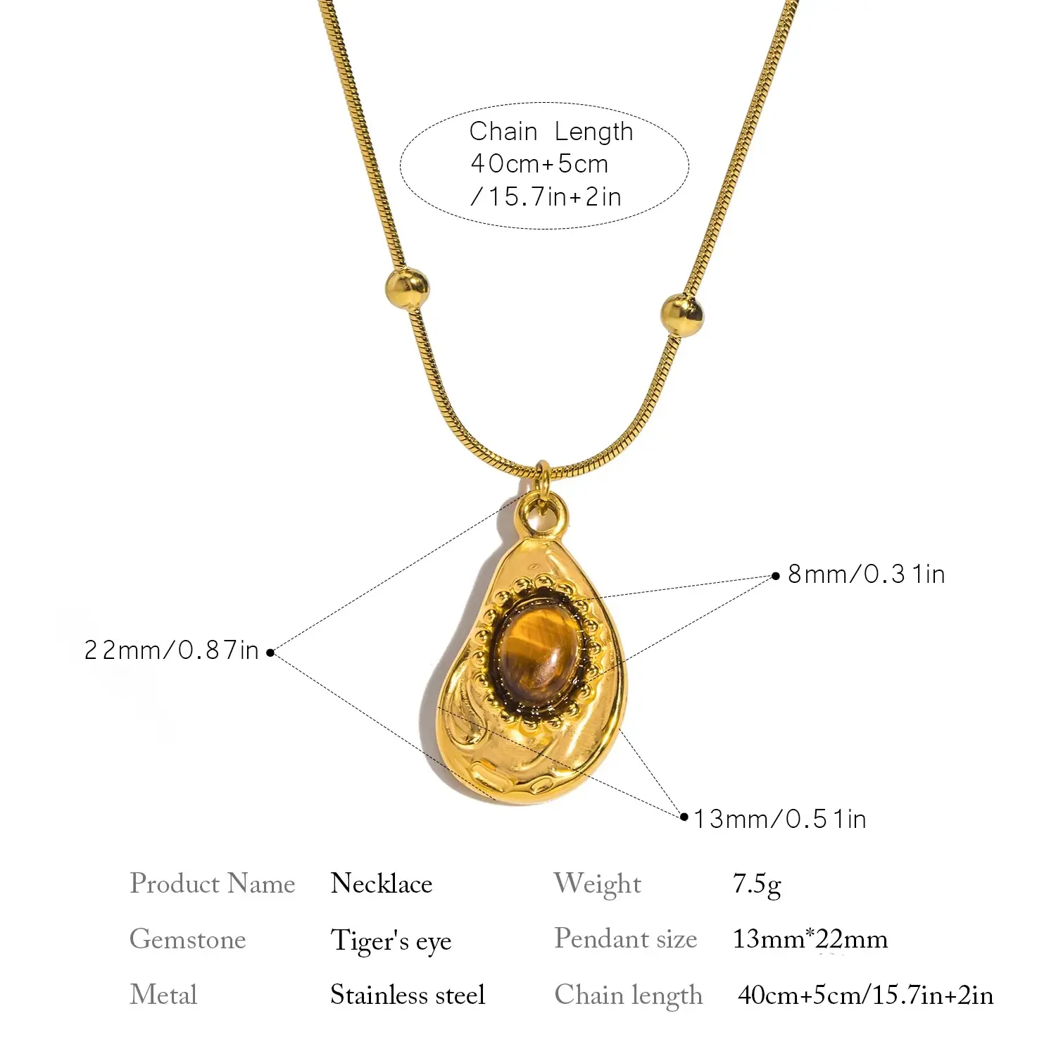 চীনের আধুনিক প্রযুক্তিতে তৈরি এই Tiger’s Eye Waterdrop Necklace আপনার লুকে যোগ করবে এক অদ্বিতীয় জ্বলজ্বল স্টাইল।